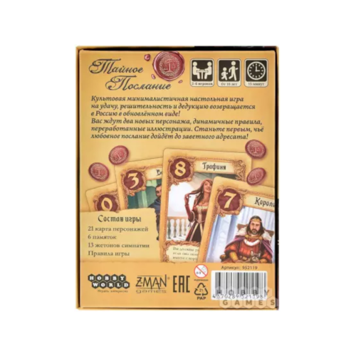 «Тайное послание» представляет собой захватывающий карточный поединок, где удача, тактика и логическое мышление идут рука об руку. В этой игре вам предстоит проявить все свои таланты, чтобы стать первым, кто донесёт любовное письмо до принцессы и покорит её сердце.