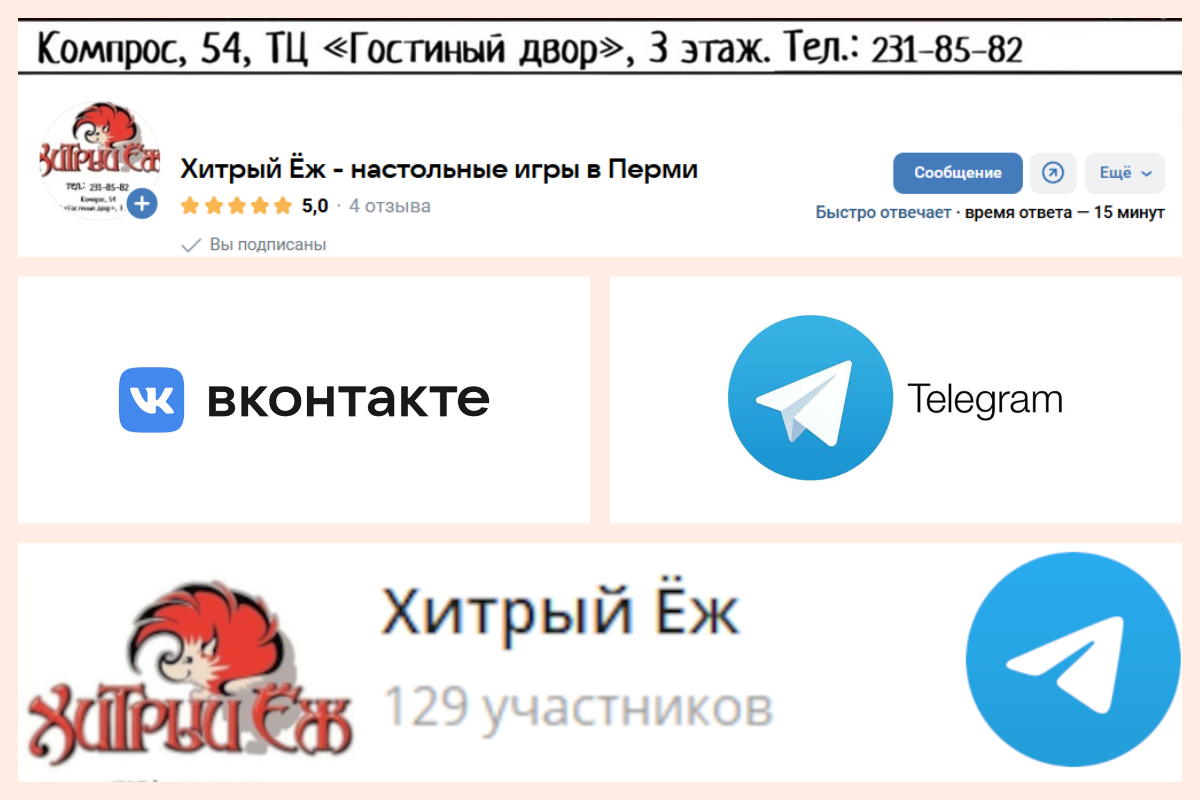 Дорогие покупатели! Разумеется, кроме сайта, "Хитрый Еж" ведет свои соцсети, в которых мы делимся всем что происходит в нашем клубе-магазине. И сегодня мы хотим вам рассказать, где же можно нас найти, чтобы подписаться, следить за новостями, а также участвовать в мероприятиях, если вы живете в городе Пермь.