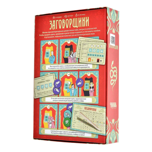 Настольная игра "Заговорщики" погрузит вас в захватывающий мир дворцовых интриг, полный опасностей и соблазнов. Чтобы преуспеть, игрокам придется использовать логическое мышление и дедуктивные способности, чтобы разгадывать скрытые послания и замечать даже незначительные детали. Каждый участник этой дворцовой игры получает секретные шифры и пытается расшифровать послания других игроков.